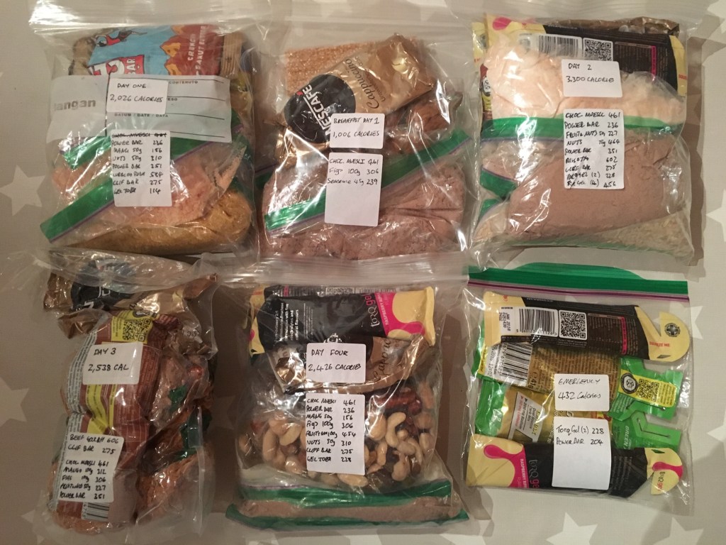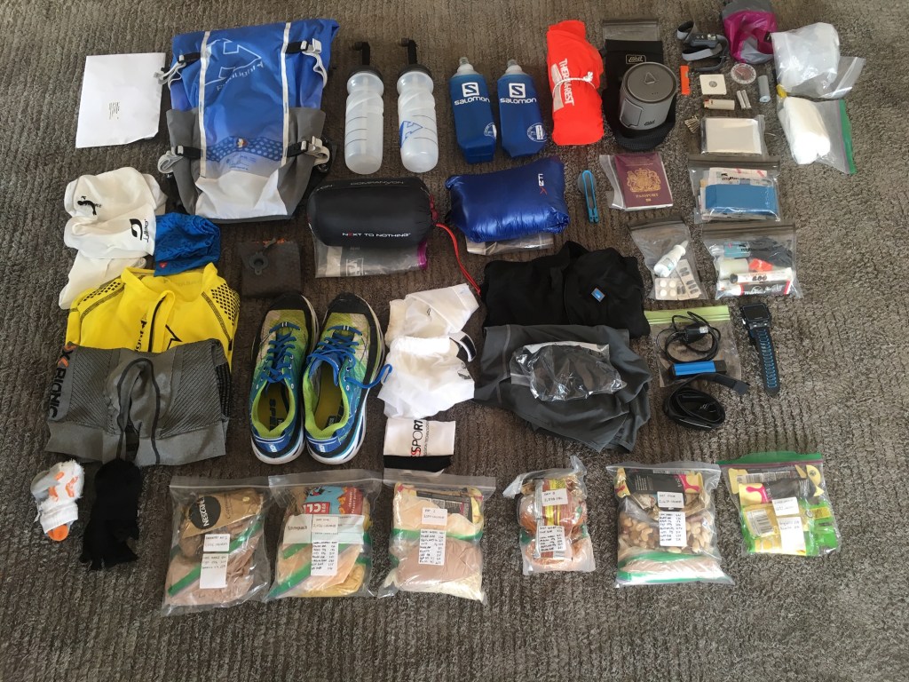 The race rules require that your rucksack must meet a minimum weight requirement of 5kg and that you carry a minimum of 2,000 calories per day in freeze dried rations. Some people had massive rucksacks – heaven knows what was in there and probably weighed 20 to 30kgs. I had gone for minimal, top of the range, super light, titanium this, carbon that kit and 2,500 calories per day. My total kit weighed in at 5.7kg which I was happy with. Next time I will probably not bother with the stove, cup and fuel tablets and eat my freeze-dried rations cold out of a cut off water bottle. My kit worked really well but I did have to buy three pairs of different trainers and five different sets of shorts, shirts and socks to find the perfect combination. I will take more loo paper though – I was terrified of running out!
