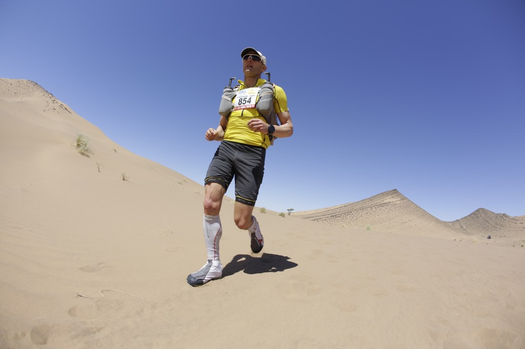Stage 4 was the much feared long stage comprising more than two marathons back-to-back with more than 1,000m of climbing and energy sapping sand and dunes. I started with Army captain James from my tent and we marched the first 42 km, running only when it was downhill. At the half way mark I felt like I had expelled no energy whatsoever and was ready to attack. I left James and began running feeling strong and confident. I began working through the field and I kept back two gels for the final “fast” 20 km. I knew things were going well as I could count fewer foot steps in the sand.