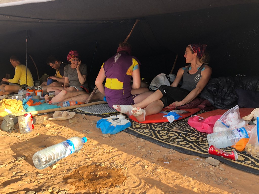 Blisters are a key part of the MDS – they are part of the myth. I had been “tanning” my feet with a special spay for the best part of a year, I had also filed down the hard skin and followed all the protocols to protect my feet. I think some people are prone to blisters and some are not – fortunately I fall into the latter category and did not get even one blister. My tent mates on the other hand were not so fortunate and their feet increasingly turned to mince meat over the course of the race. By the end some had more blister and taping than feet. I cannot begin to imagine how my tent mates dealt with the pain.