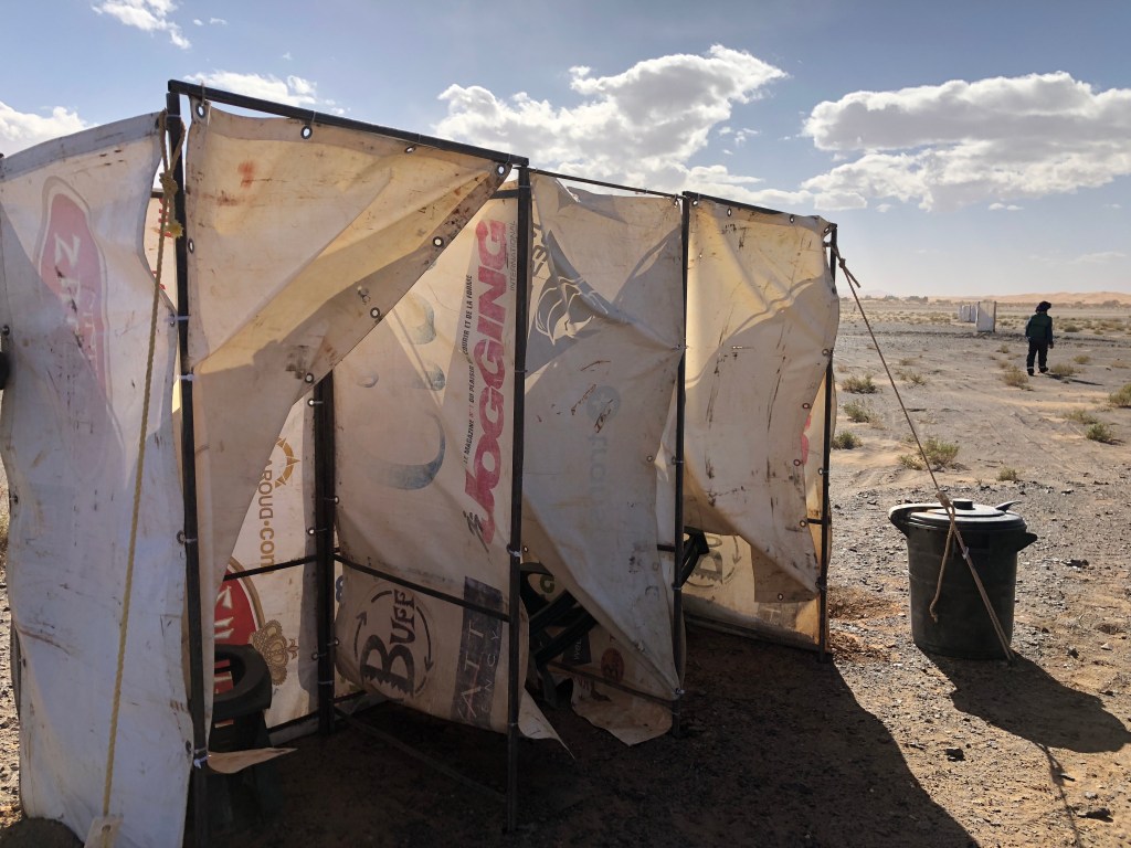 A six hour transfer had brought us to the bivouac on the first day and our traditional open “berber” tent which would be home for the next seven days. Home consisted of a large blanket pegged to the sand with various sticks placed strategically to create a tent like living space for groups of eight, predominantly, white, middle class, Western Europeans in various stages of their mid-life crises. A rug was laid across the floor and a daily task on finishing a stage was to sweep away all the stones as we slept on the floor. The tent was open on both sides so that the Sahara winds, gusting on one day up to 80 kph, could pass through without destroying the tent. Nice in theory, disastrous in reality as when the sand storm hit every tent was obliterated. Tim, James, Anthony, Frances, Niki, Caroline, Robert and I attempted to get some sleep before the start of the first stage.