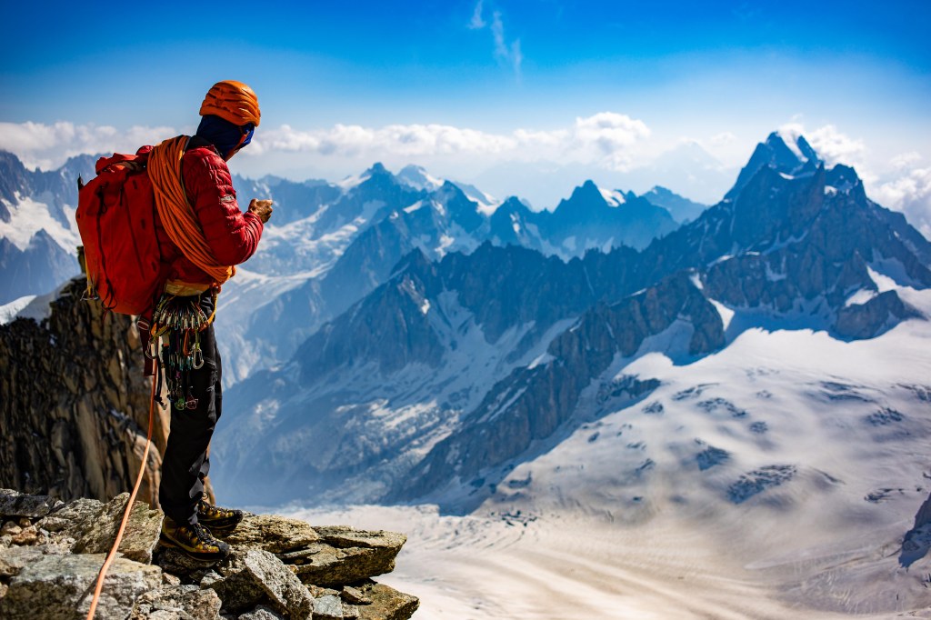 Having reached my limits and having decided to ignore them, I climbed the remaining spires with confidence and without issue. Five 4,000m peaks logged and only the Mont Blanc du Tacul still to climb. The final summit seemed to take for ever and probably because it comprised easy rock and a straightforward snowy ridge which seemed dull by comparison with the other peaks.