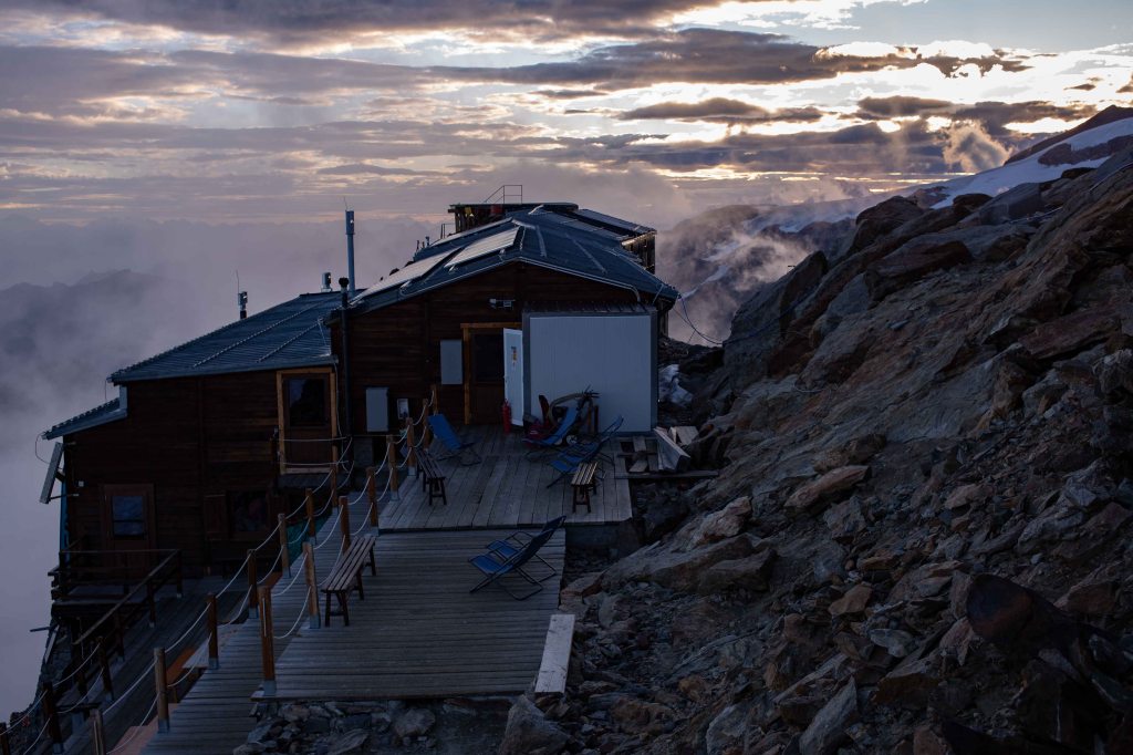 Fortunately, the hut lived up to expectations. The Gnifetti Hut has a reputation for amazing food and we ate and drank well. Despite the day from hell, Catie was prepared to try again tomorrow – I was impressed by her attitude. To compensate for the previous communication breakdown, I went through the full plan for Parrotspitze; we looked at maps, routes and photos and even took a look at the metal steps she would have to climb down in the morning as well as how to prepare her kit for the 4:30am start.