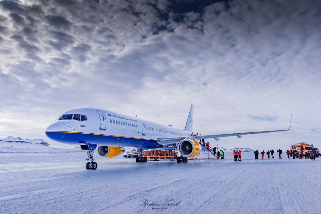 The flight from Punta Arenas, Chile to the blue ice runway on Union Glacier, Antarctica, takes four hours. The view from the window evolved from the ocean to sea ice, to snow with the occasional mountain rising up from the ice in the same way the peaks of the Alps sometimes rise from a sea of cloud. The length of the journey provided an initial insight into the vastness of the Antarctic continent.