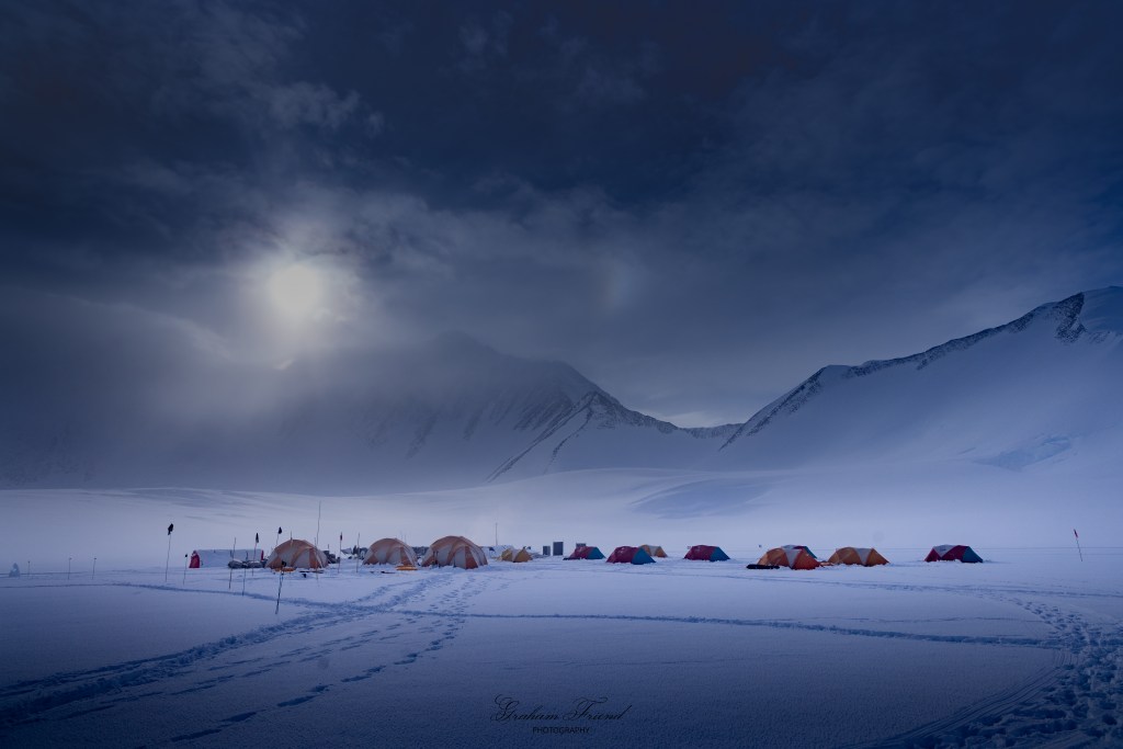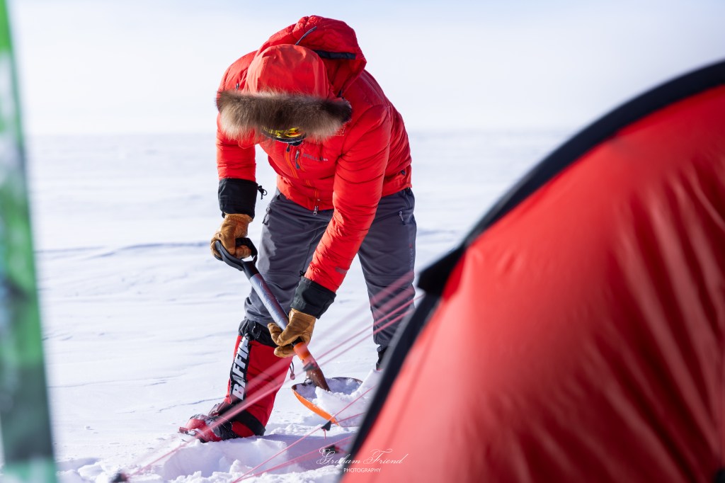 After returning to High Camp, we were able to swiftly descend to Vinson Base Camp in great weather and in an ideal world, a plane would have whisked us straight back to Union Glacier. If there had been a plane we would still have been on schedule for the Last Degree. Unfortunately, there was no plane waiting (other operational priorities the reason apparently) and then the weather closed in and we were stuck in Vinson Base Camp for a further few days which was eating into our Last Degree.