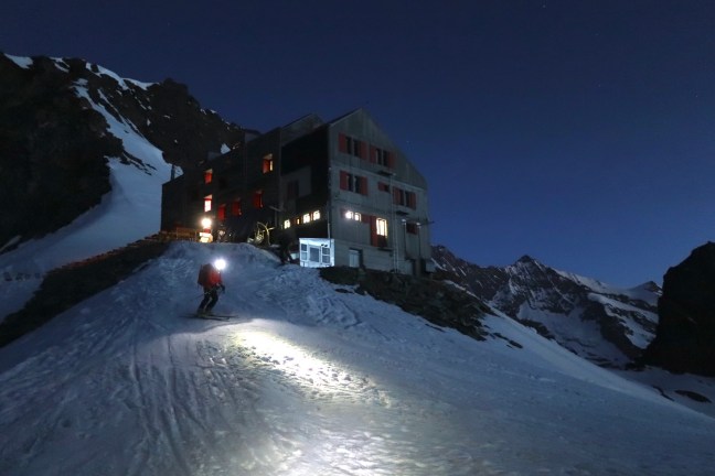 Just getting to the Aosta Hut, our support base for the Dent D’Herens, was a mission. A twisting Italian mountain road took me to the Place Moulin Dam. From there, I road Catie’s “shopping bike” to the end of lake (5km) along a day-tripper strewn and rocky path that nearly destroyed her bike before chaining … Continue reading Summit Report (featuring suicidal Spaniard) – Dent D’Herens, 4,171m, AD